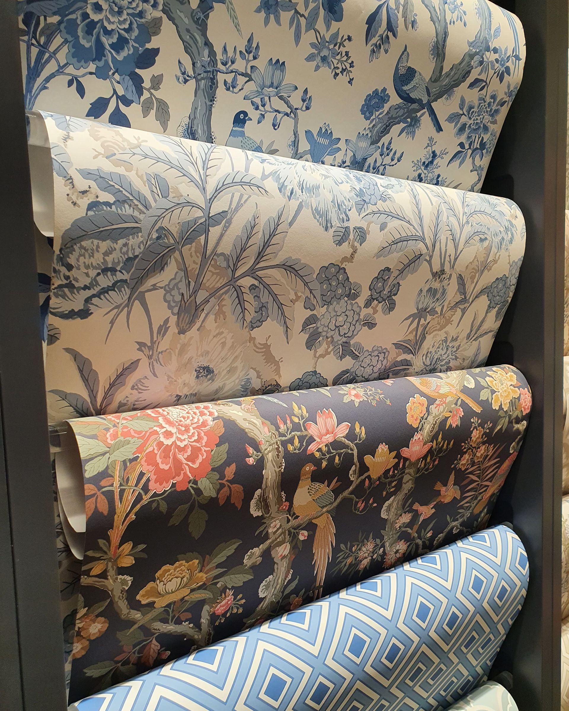 You’ll find a wide range of contemporary and traditional wallcoverings at our Edgbaston showroom. We offer ranges from all the major design houses as well as some more exclusive luxury brands. Whether it’s surface or digital print, murals or scenes, silk strand, fabric or plant fibre, we’ve got it! Not to mention beaded, metallic and flock designs – we like to think John Charles Interiors has something for everyone.